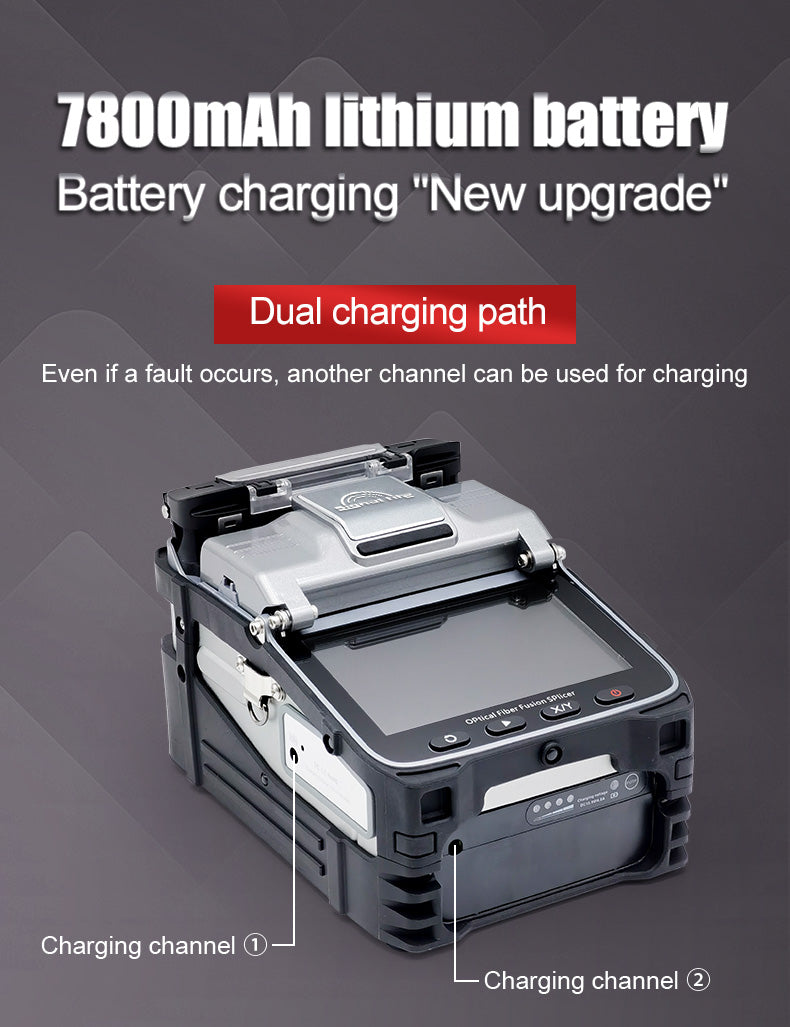AI-7C Signal Fire Fusion Splicer comes with a 7800mAh lithium battery, 6s splicing/15s heating, 6 motors, automatic focusing core alignment, industrial quad-core chip CPU, 1 second startup, 3-in-1 fibre holder. Excellent performance in extremely cold plateau environments.